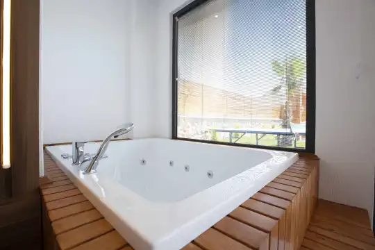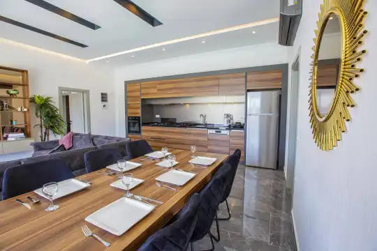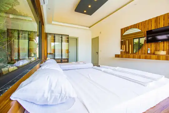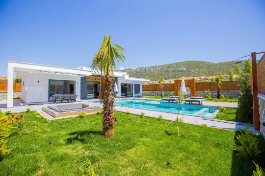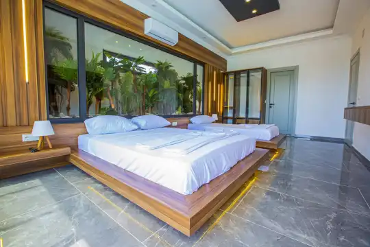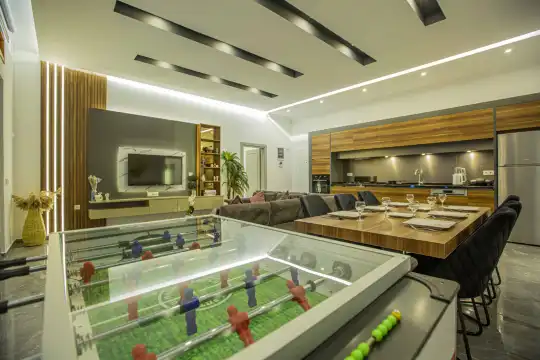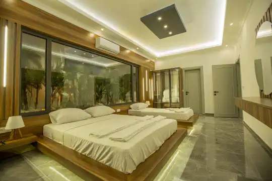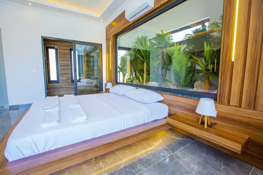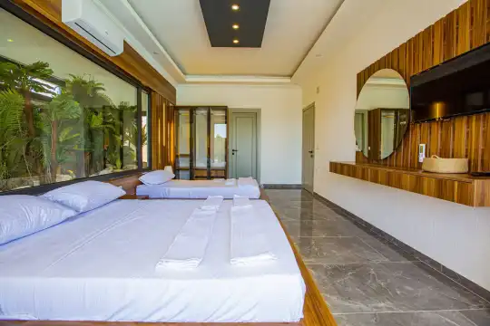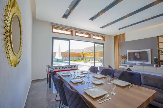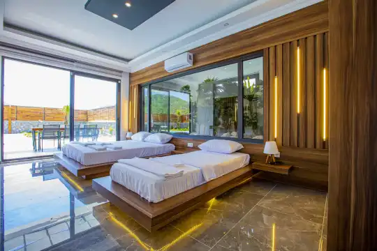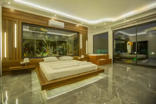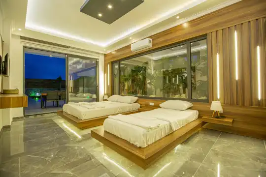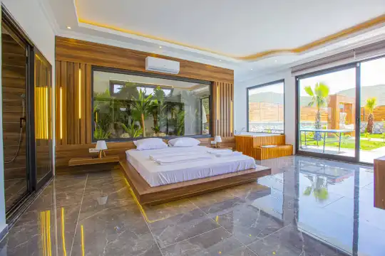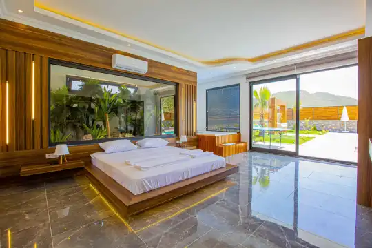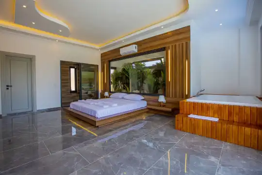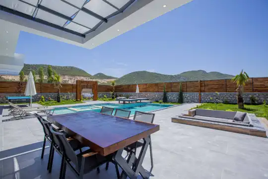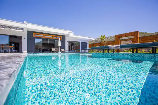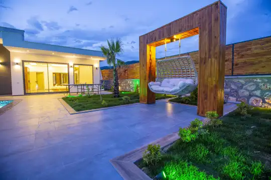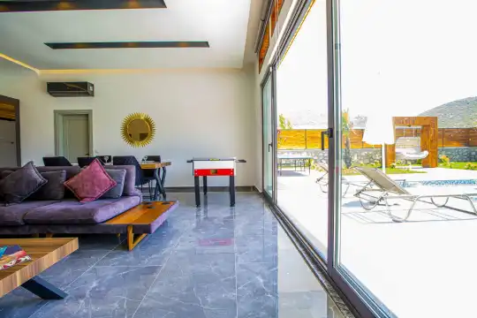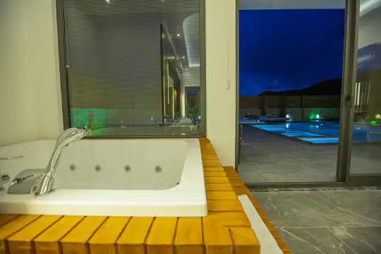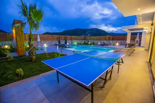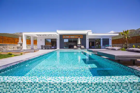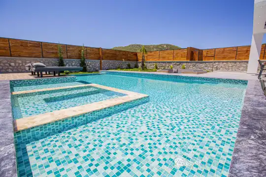 Villa Bahamas, our sheltered villa located in the Kalkan Bezirgan region, has 2 bedrooms and an accommodation capacity of 5 people. Our villa is ideal for conservative families and honeymoon couples because it is sheltered. Villa Bahamas has a large, sheltered garden with a pool, children's pool, sun loungers, swings, table tennis, garden set, dining table and barbecue. There is a jacuzzi in one of the bedrooms in the modernly designed villa. You can rent Villa Bahamas, which is highly preferred with its large garden and modern architecture, at Kalkanvilla.org with early booking opportunities.