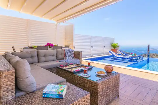 Damage Deposit: ₺ 3.000 € 60 £ 53 $ 71The damage deposit is taken extra upon entering the villa and is refunded if there is no damage when leaving the villa.