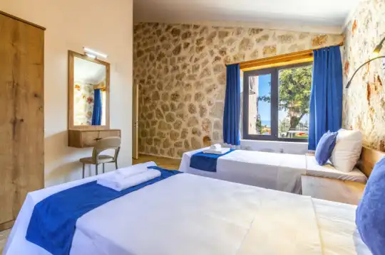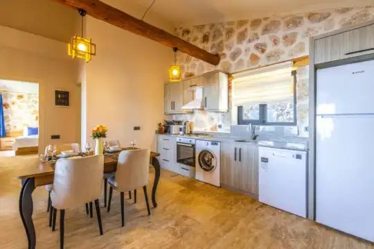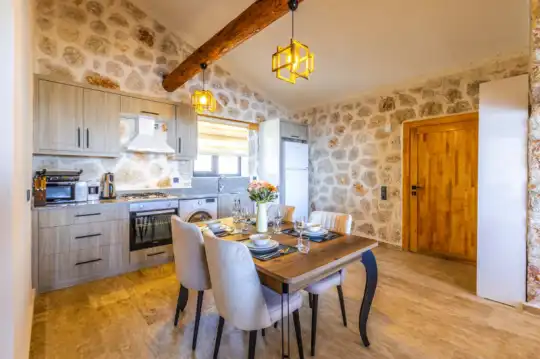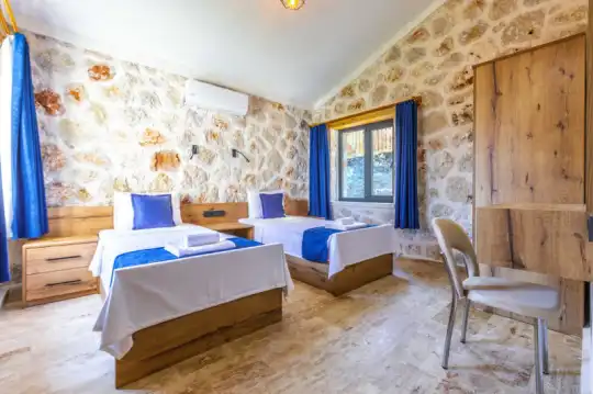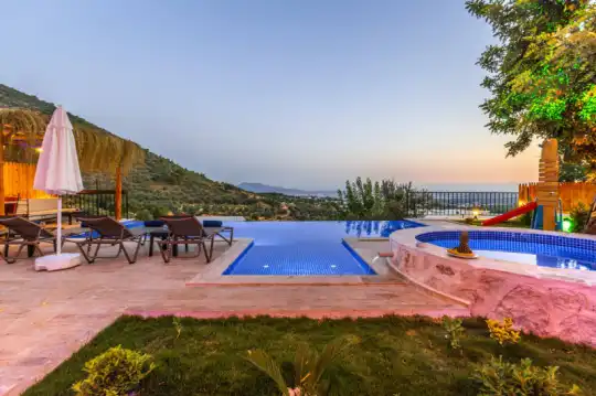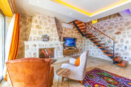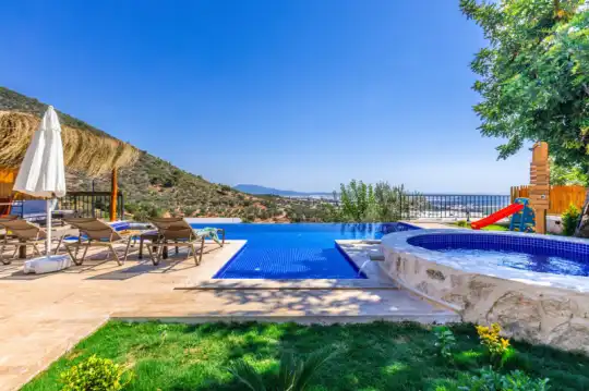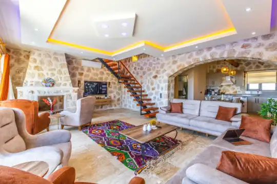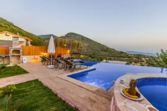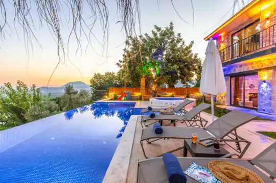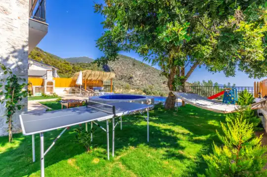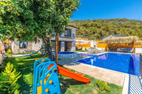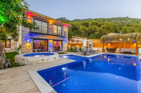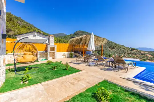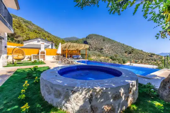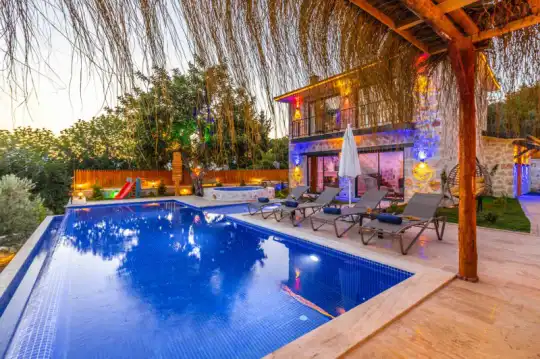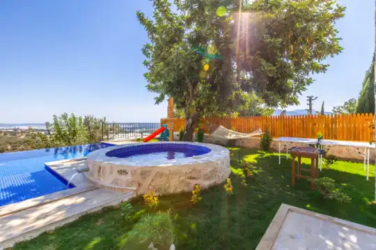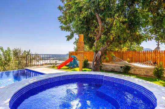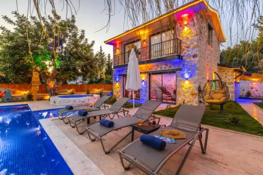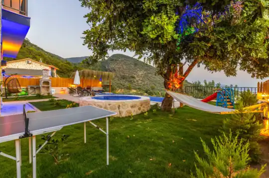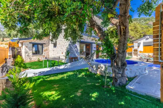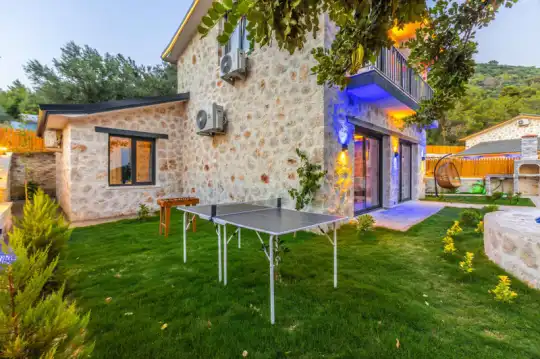 Villa Manavgatlı 3, located in Kalkan Çavdır Region, has a stone architecture villa with 2 bedrooms and an accommodation capacity of 4 people. In the sheltered large garden of our villa, there is a pool, jacuzzi, swing, hammock, table tennis, table football, mini children's playground, sitting corner, dining table and barbecue. Villa Manavgatlı 3 is ideal for conservative nuclear families as it is sheltered. Our guests who want to have a pleasant and entertaining holiday away from the city noise can choose Villa Manavgatlı 3.
